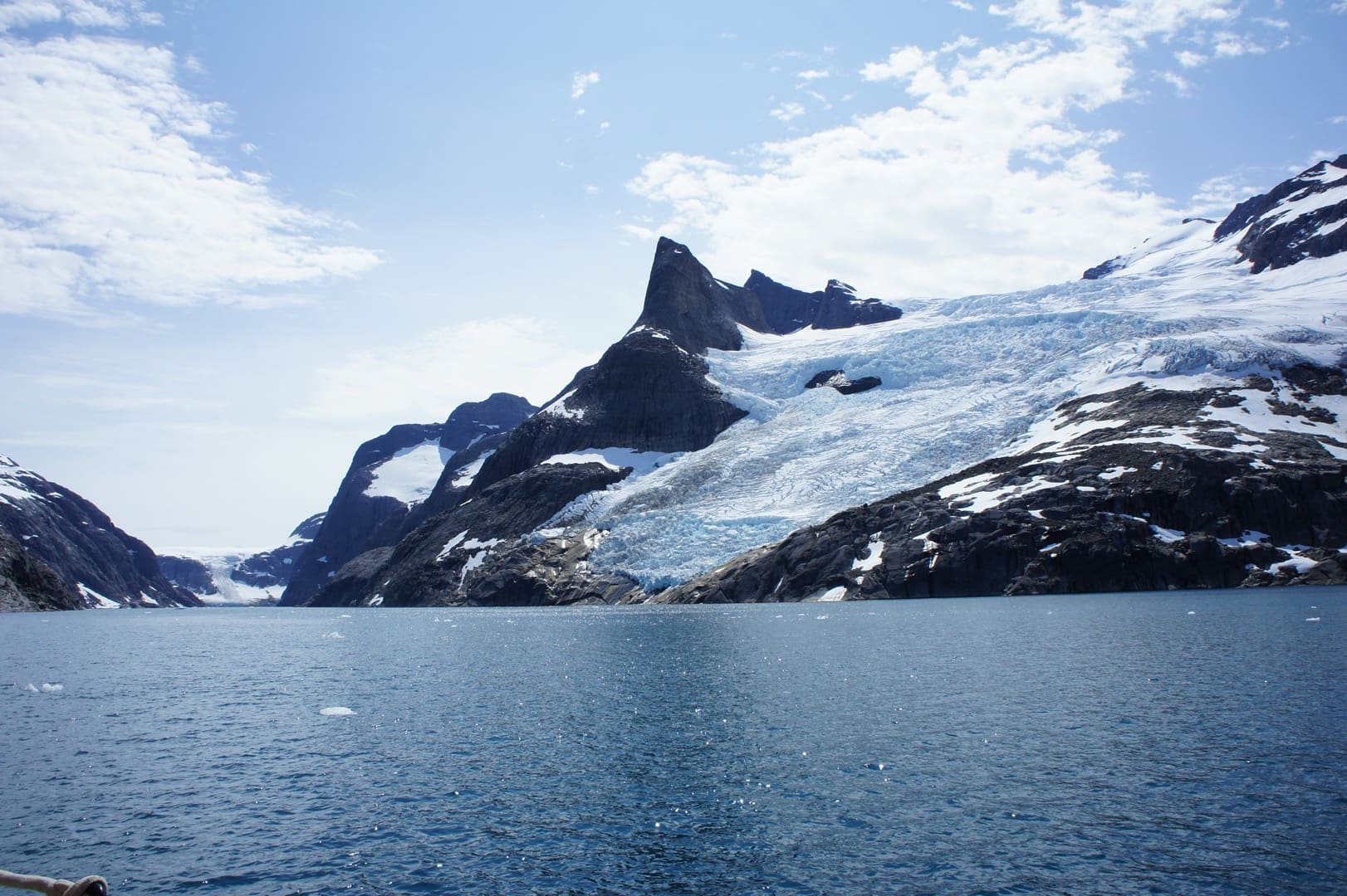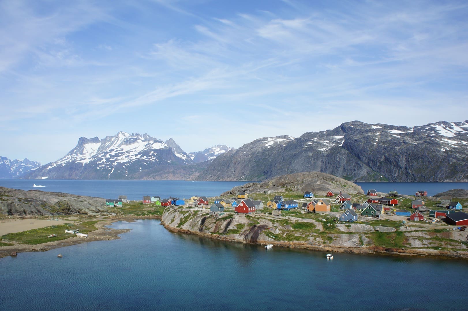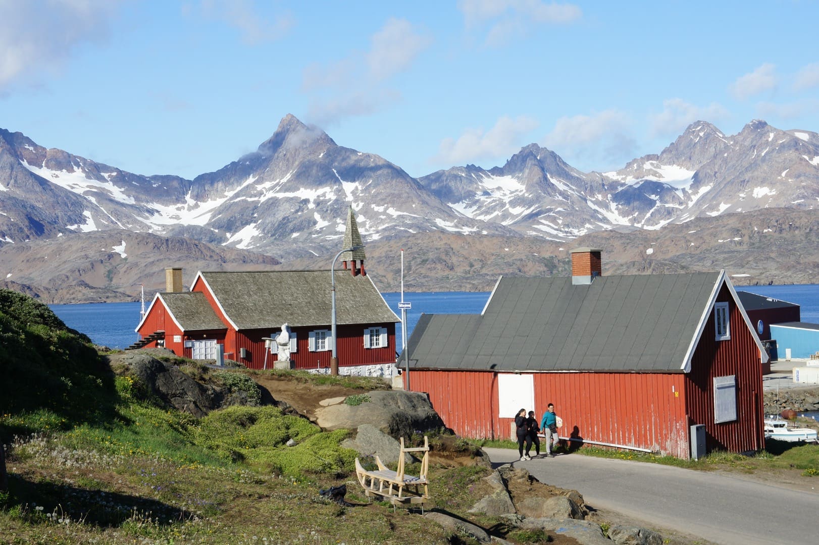 In Südgrönland wird Grönland seinem Namen ein bisschen gerecht: Grönland – das Grüne Land. Hier ist das Klima etwas milder, die Landschaft ist grüner und fruchtbarer als im Rest der Insel. Hier finden wir viele kleine Siedlungen und Farmen, wo Schafe weiden. Auch die Ruinen der Hvalsey-Kirche und andere Zeugnisse aus der Wikingerzeit können wir hier entdecken. Der Prins Christian Sund, die Wasserstrasse am Südzipfel Grönlands, gilt als eine der schönsten Seepassagen der Welt. Das leuchtende Blau der Eisberge und Gletscher steht im schönen Kontrast zu den grünen Flanken der gewaltigen Berge. In Südgrönland, bei Uunartoq, finden wir auch die einzigen heissen (oder zumindest warmen) Quellen der Insel. Auch Einheimische kommen sehr gerne hierher, geniessen das warme Wasser und den spektakulären Blick auf hohe Berggipfel und die im Meer treibenden Eisberge.