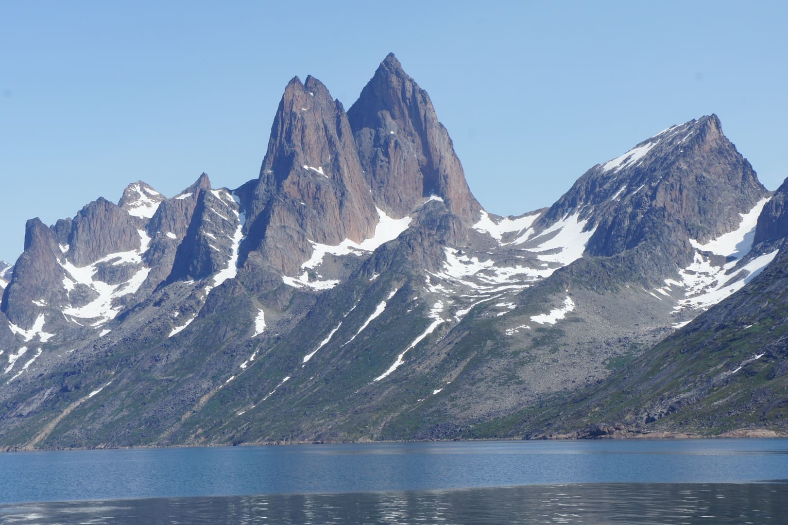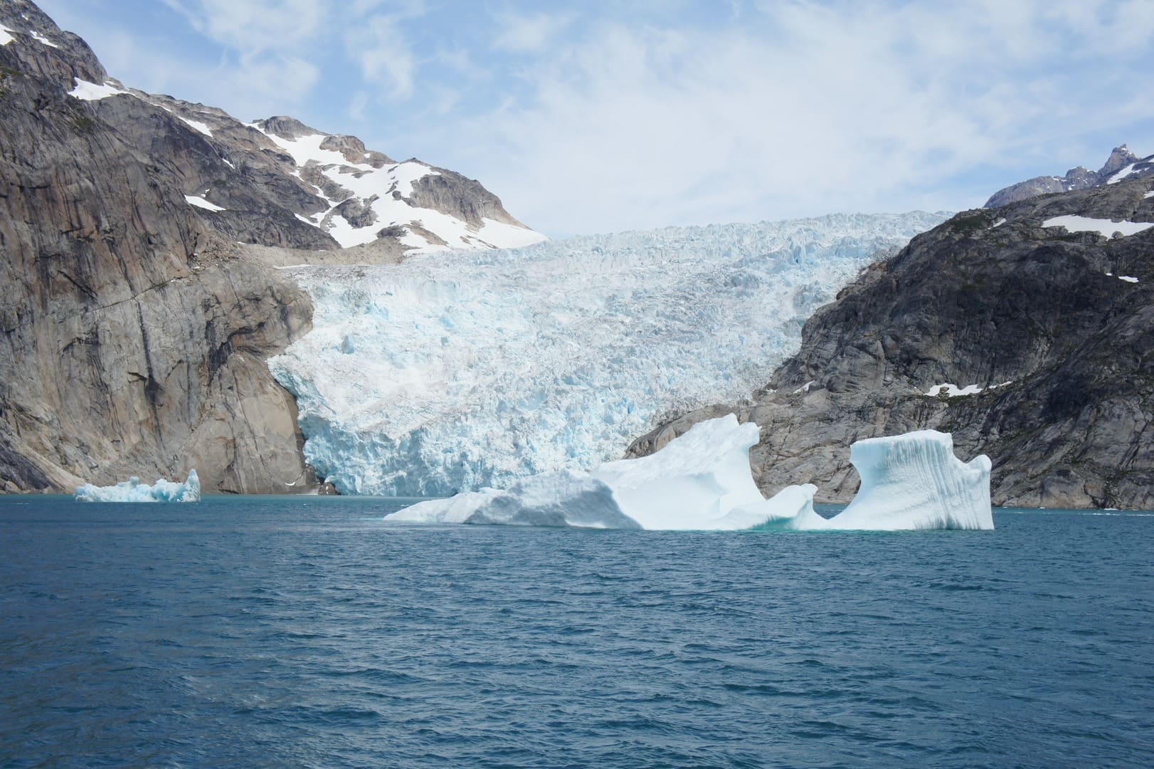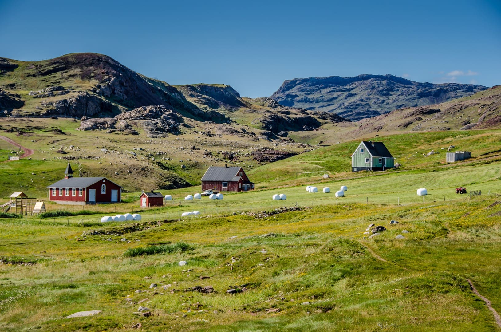 In Südgrönland wird Grönland seinem Namen ein bisschen gerecht: Grönland – das Grüne Land. Hier ist das Klima etwas milder, die Landschaft ist grüner und fruchtbarer als im Rest der Insel. Hier finden wir viele kleine Siedlungen und Farmen, wo Schafe weiden. Auch die Ruinen der Hvalsey-Kirche und andere Zeugnisse aus der Wikingerzeit können wir hier entdecken. Der Prins Christian Sund, die Wasserstrasse am Südzipfel Grönlands, gilt als eine der schönsten Seepassagen der Welt. Das leuchtende Blau der Eisberge und Gletscher steht im schönen Kontrast zu den grünen Flanken der gewaltigen Berge. In Südgrönland, bei Uunartoq, finden wir auch die einzigen heissen (oder zumindest warmen) Quellen der Insel. Auch Einheimische kommen sehr gerne hierher, geniessen das warme Wasser und den spektakulären Blick auf hohe Berggipfel und die im Meer treibenden Eisberge.