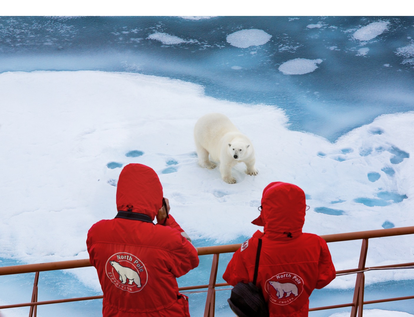„Top of the World“ – einmal da stehen, überall nur noch Süden! Bis vor kurzem war der russische Atomeisbrecher „50 Years of Victory“ das einzige Schiff, das Touristen bis zum geographischen Nordpol brachte. Heute geht es auch mit einem modernen Luxus-Eisbrecher. Während sich unser Eisbrecher durchs Packeis pflügt, fühlen wir uns selbst wie Entdecker. An Deck ist nur das Brechen des Eises zu hören und das Pfeifen des Windes. Dann, in der Stille dieser endlosen weissen Wüste, erblicken wir in der Ferne auf dem glitzernden Eis den König der Arktis. Und wir wissen: die Gänsehaut kommt für einmal nicht von der Kälte!
